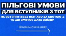 28.04.2026 08:1019Україна чекає на дітей і молодь з тимчасово окупованих територій і створює умови, щоб цей шлях був реальним, доступним і безпечнимУмови вступу залежать від дати виїзду. Якщо ви досі перебуваєте на ТОТ або виїхали після 1 жовтня 2025 року — вступ можливий без НМТ, через співбесіду в університеті. Якщо виїзд був раніше —... -