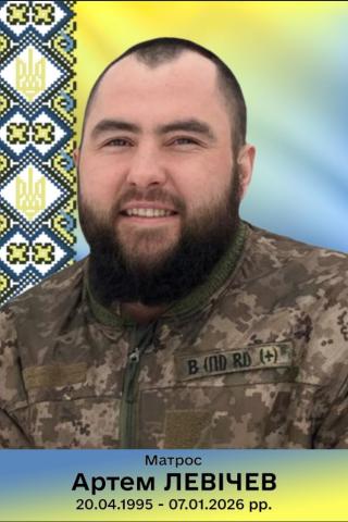 Левічев Артем Олександрович 17.02.2026, 10:45 20 Дата народження: 20 квітня 1995Дата загибелі: 07 січня 2026Левічев Артем Олександрович – учасник російсько-української війни, матрос.