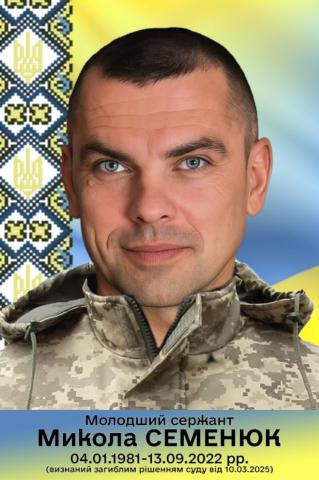 Семенюк Микола Юрійович — учасник російсько-української війни, молодший сержант, навідник кулеметного взводу.