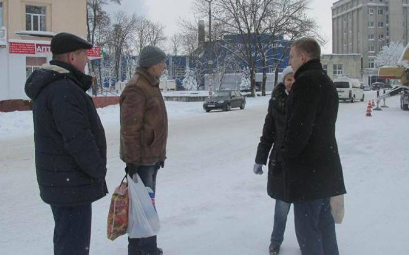 Як бачимо зі знімків, перехожі жваво цікавляться процесом та, користуючись нагодою, відразу вирішують з керівництвом міста питання, які їх турбують.