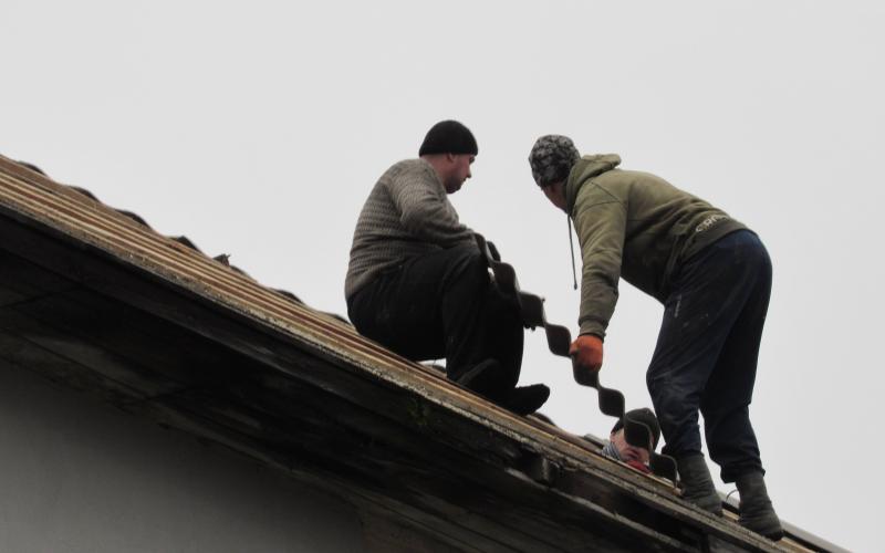 — Роботи у Малині і громаді багато, — коментує представник підрядної організації. — Ми заїхали до Вас ще в червні і працюємо майже без перерви. У центрі міста ремонтували житлові будинки, пожежну частину, Центр культури, а також житлові будинки по селах. Зараз наша бригада міняє покрівлю у цьому двоповерховому житловому будинку. Закінчимо цей — приступимо до іншого.