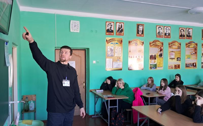 Мова йшла про види мін, їх небезпеку, першочергові дії при виявленні мін та запобігання небезпечним ситуаціям. Представники організації також роздали пам’ятки.