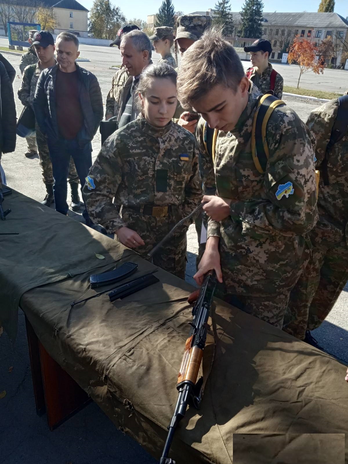 У позашкільний час молодь навчається поводитися зі зброєю та рукопашному бою.