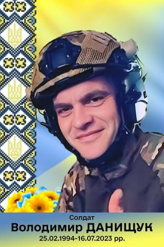 На жаль, життя Володимира Данищука обірвалося 16 липня 2023 року поблизу н.п.Курдюмівка Бахмутського району Донецької області. Під час виконання бойового завдання він отримав смертельні поранення внаслідок ворожого мінометного обстрілу.