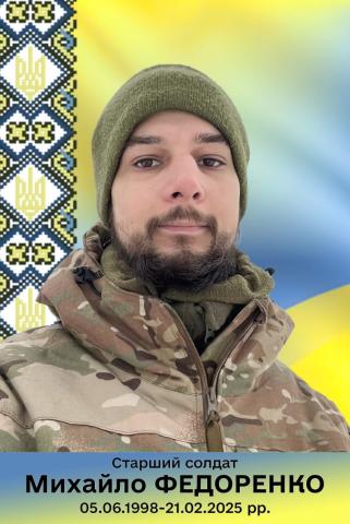 Лютий 2022 року змінив життя хлопця з мирного на воєнне – сповнене тривог та небезпек. До лав Захисників України Михайло Федоренко доєднався у лютому 2023 року. Разом з побратимами із 30-ї окремої механізованої бригади ім. князя Костянтина Острозького пройшов бої на Харківському та Донецькому напрямках, обороняв Часів Яр, Кліщіївку, Синьківку, Лиман та Соледар.