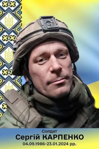 Карпенко Сергій Анатолійович - учасник російсько-української війни. Солдат, оператор 1 аеромобільного батальйону 95-ї ОДШБр
