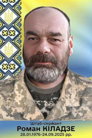 Кіладзе Роман Тимурович 12.11.2025, 15:07 9 Дата народження: 28 січня 1976Дата загибелі: 24 вересня 2025Кіладзе Роман Тимурович - учасник російсько-української війни.