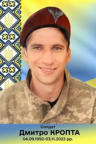 Кропта Дмитро Миколайович - учасник російсько-української війни. Солдат, стрілець-помічник гранатометника десантно-штурмового взводу 95-ї окремої десантно-штурмової бригади.