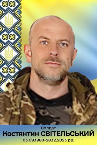 28 грудня 2023 року Костянтин Світельський загинув під час виконання бойового завдання поблизу населеного пункту Веселе Донецької області, потрапивши під ворожий артилерійський обстріл. Його самопожертва та відданість залишаються в пам'яті кожного, хто його знає, як приклад справжнього героїзму та патріотизму. Костянтина завжди будуть пам'ятати як сина рідної землі, який віддав життя за майбутню Україну.