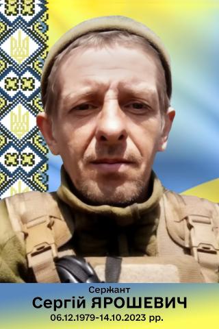 Ярошевич Сергій Миколайович - учасник російсько-української війни. Сержант, старший стрілець-оператор відділення морської піхоти, 503-й окремий батальйон морської піхоти.