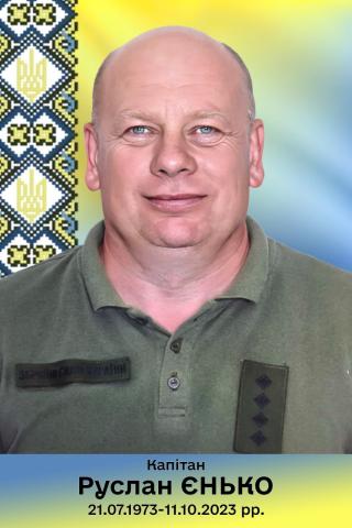 Єнько Руслан Олександрович - офіцер 3-го відділу Коростенського РТЦК та СП. Військове звання - капітан.