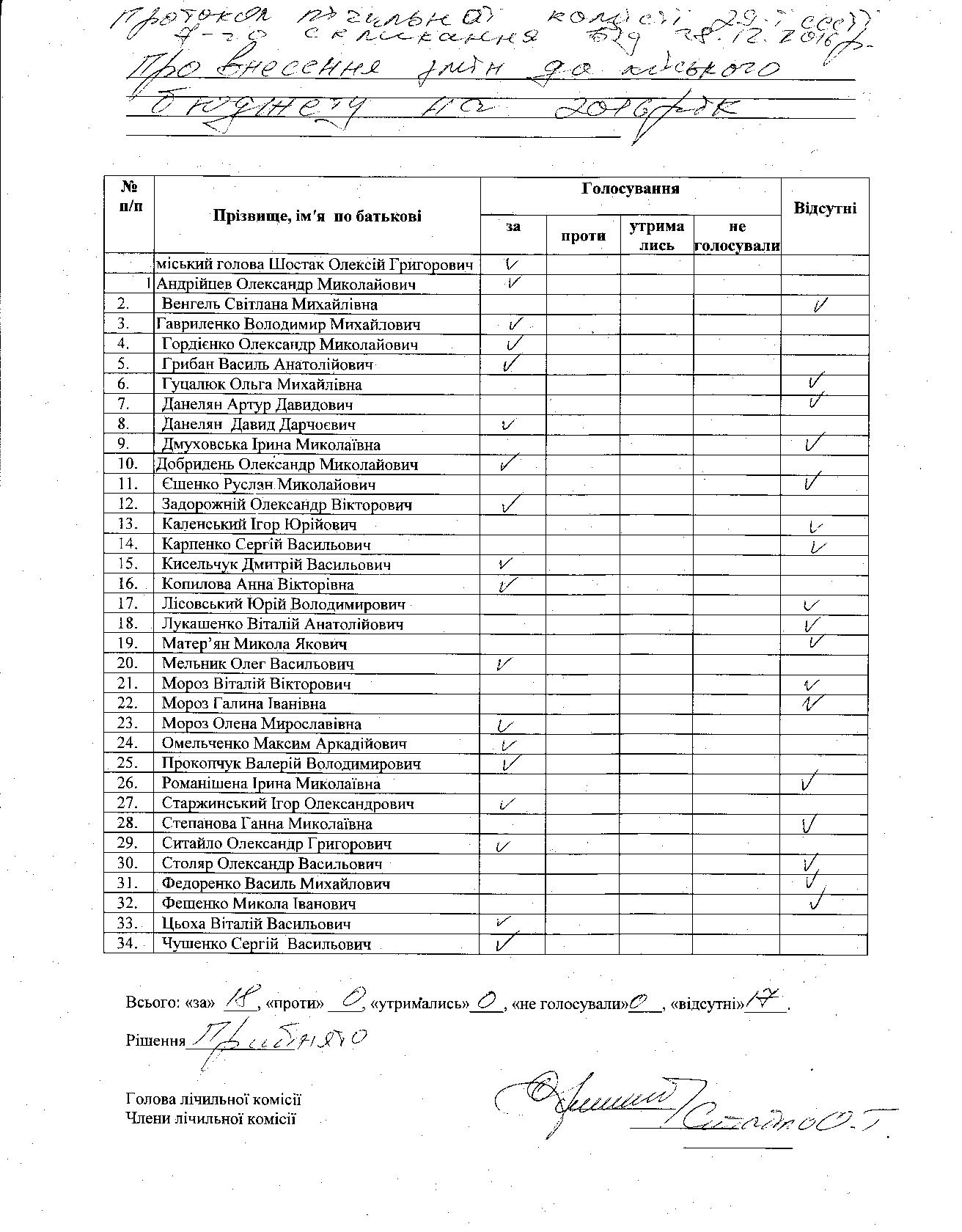 Поіменне голосування депутатів 29-ої сесії 7-ого скликання