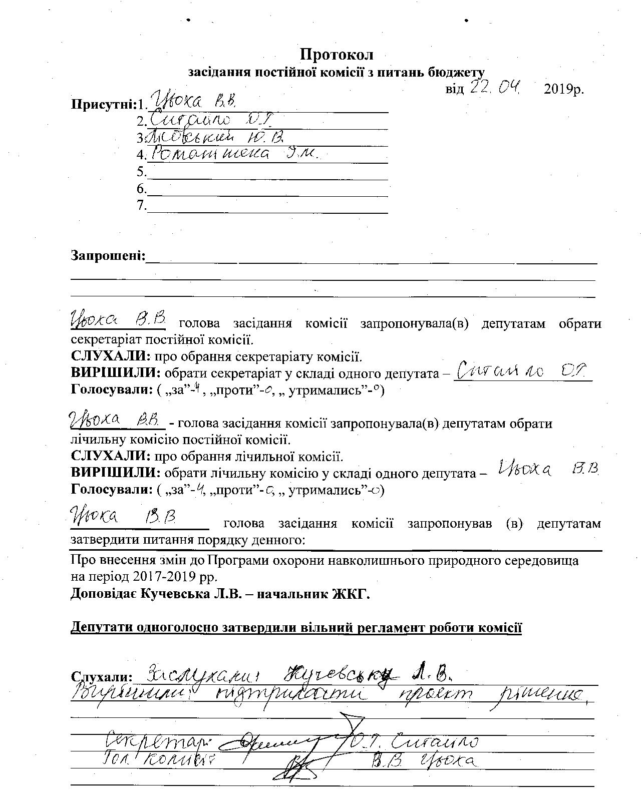 Протокол засідання депутатської комісії 04.2019