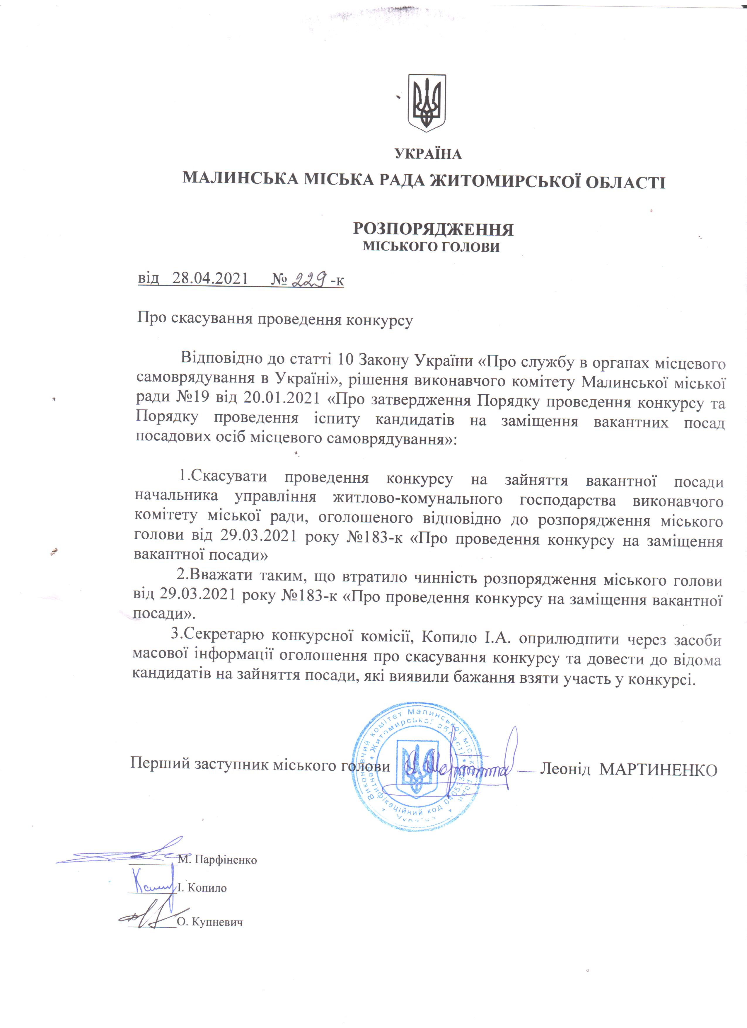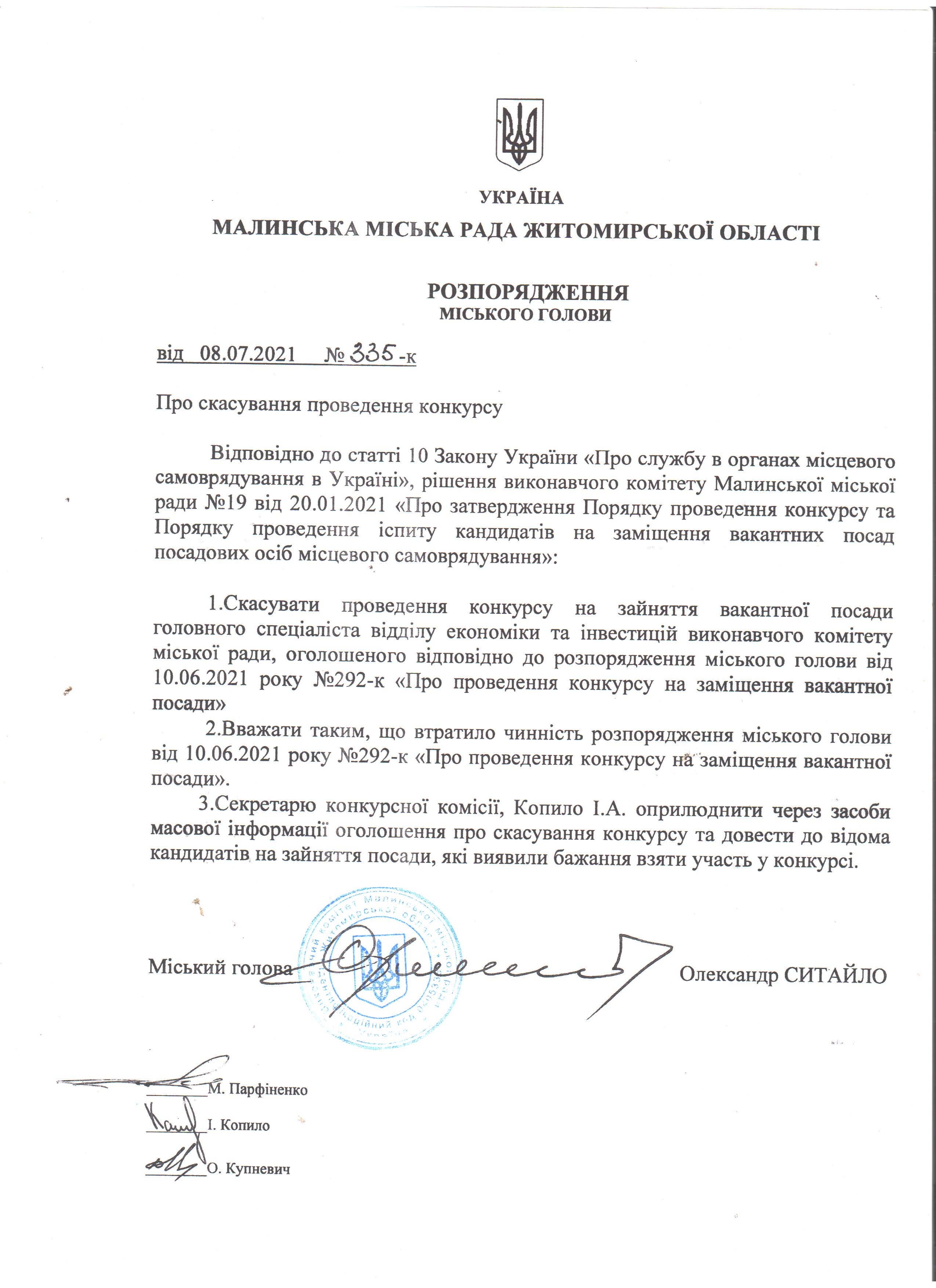 Про скасування проведення конкурсу