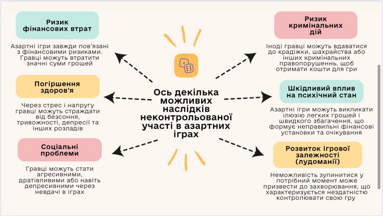 Важливо розуміти, що азартні ігри несуть із собою певні ризики. Гра може перетворитися на проблему, якщо постійно ризикувати великими сумами та багато часу витрачати на неї. Залежність від азартних ігор може мати серйозні фізичні, психологічні та соціальні наслідки.