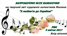31.03.2017 16:23Інше, Культура, Міські заходи7225 квітня – творчий звіт міських художніх колективів!Запрошуємо всіх малинчан та гостей міста на творчий звіт художніх колективів Малина. Концерт відбудеться 5 квітня о 17.00 в районному Будинку культури . Вхід вільний. У програмі виступи школи танців... -