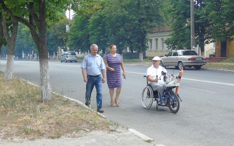 Заступник міського голови Леся Сніцаренко та начальник міського УПСЗН Сергій Недогарок разом з  Олександром Проніним протестували центральні вулиці міста та деякі об’єкти інфраструктури на доступність. Адже якщо питати поради стосовно покращення доступності міста – то у тих, хто щоденно долає подібні бар’єри, непомітні оку здорової людини.