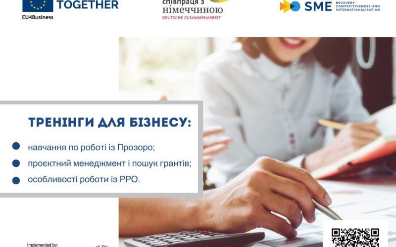 Для представників малого та середнього бізнесу планується проведення тренінгів з публічних закупівель, проєктного менеджменту та особливостей роботи з реєстраторами розрахункових операцій (РРО). Це унікальна можливість безкоштовно отримати цінні знання для розвитку та вдосконалення власної справи.