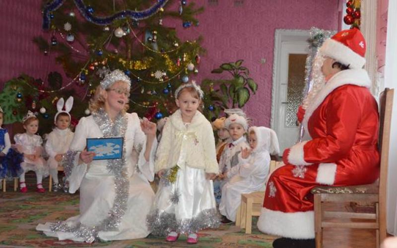 До найменших маличан приходять у гості казкові герої  і, звичайно, Дід Мороз та Снігуронька. І, як годиться, жодне свято не обходиться без віршів, пісень, хороводів навколо ялинки. Кожному малюку Дід Мороз вручає такий очікуваний новорічний подарунок.