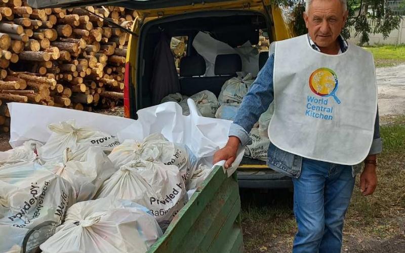 Висловлює вдячність за надану допомогу World Central Kitchen — організації, яка з початку війни долучилася до продовольчої допомоги: допомагає волонтерам годувати людей на тимчасово окупованих територіях, організовує гаряче харчування для переселенців, формує продуктові набори. А в перші тижні війни постачала їжу й українським військовим.