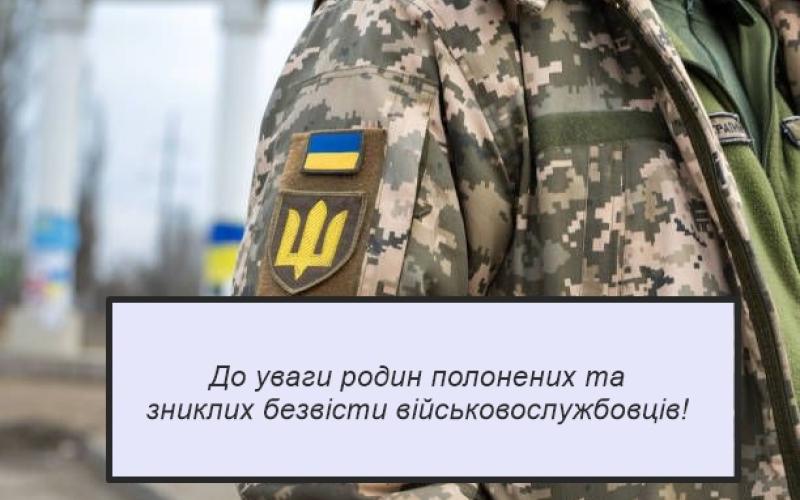 До уваги членів сімей полонених або зниклих безвісти військовослужбовців!