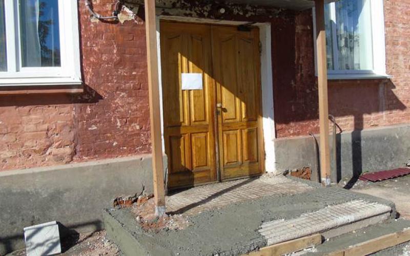 У «Ялинці» триває ремонт сходів. Бригада не лише ремонтує власне сходи, а й встановлює нові опори, оновлює дашки над вхідними дверима, закріплює нові водостоки.