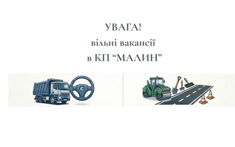 КП «Малин» запрошує на роботу водіїв категорії С та дорожніх робітників.