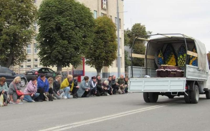 Кількаметровим живим коридором, на колінах, схиливши в скорботі голови, Малинська громада провела у останню путь своїх Героїв – Віталія Марченка та Олексія Федоренка.