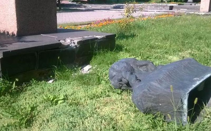 Сьогодні уночі невідомими було пошкоджено бюст нашої землячки, Героя Радянського Союзу Ніни Сосніної. Як видно на знімку, його скинули з постаменту, при цьому пошкодивши фундамент. По даному факту уже працюють правоохоронці, які узяли показання у працівників КП «Екоресурс», котрі обслуговують парк. За словами директора КП «Екоресурс» Олександра Ситайла, сьогодні до вечора бюст буде встановлено на місце.
