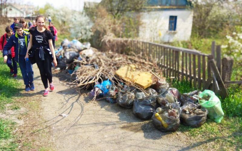 На фото: учнівська молодь громади завжди бере активну участь у заходах щодо поліпшення санітарного благоустрою Малинщини.