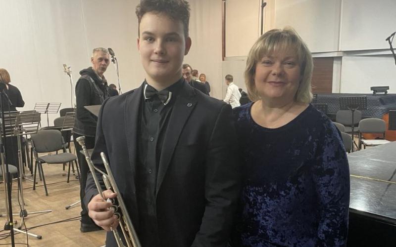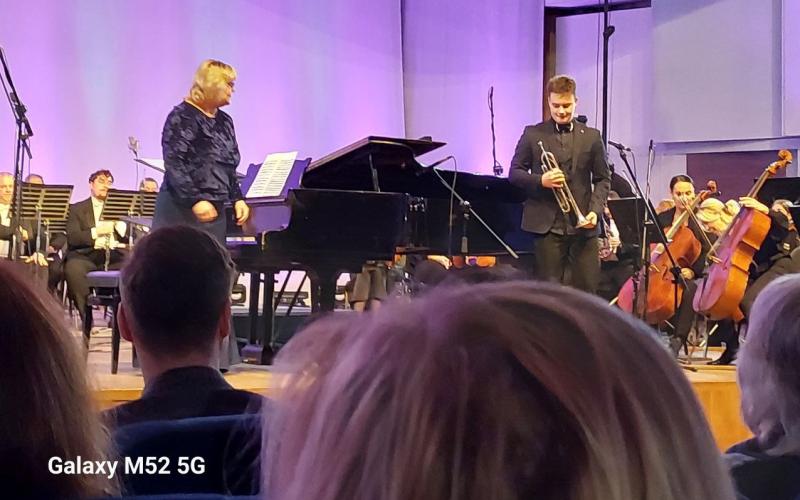 Наш земляк виконав другу та третю частини сонати для труби Педро Монтасарі у супроводі концертмейстерки Оксани Возьянової.