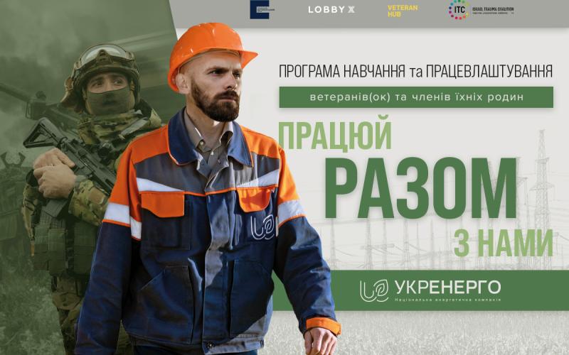 НЕК «Укренерго» запрошує ветеранів, ветеранок та членів їхніх родин взяти участь у програмі з навчання та працевлаштування «Разом»