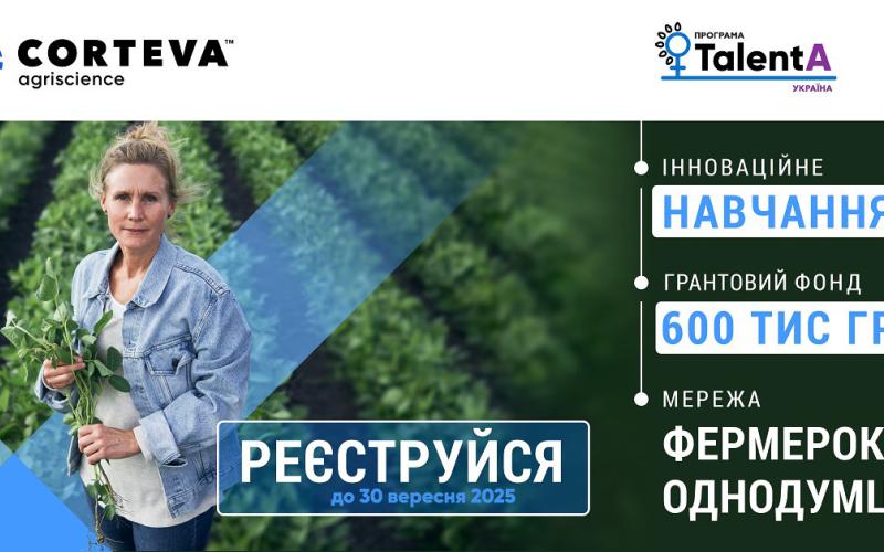 Міжнародна сільськогосподарська науково-дослідницька компанія Corteva Agriscience оголосила про запуск освітньо-грантової програми TalentA 2025-2026. Завдяки програмі учасниці отримають доступ до інформації, яка допоможе їм забезпечити життєздатність власного бізнесу із урахуванням практик сталого розвитку, а також можливість виграти грант для впровадження або розвитку переробки продукції і впровадження складових соціальної відповідальності, що сприятиме досягненню цілей сталого розвитку та задоволення актуальних потреб територіальних громад.