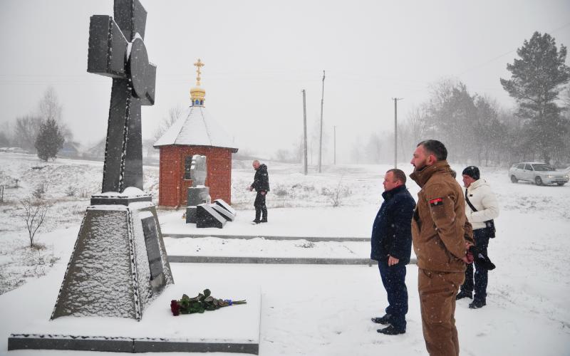 Після зустрічі було вшановано пам’ять добровольців, які віддали життя за волю України, покладанням квітів до Козацького хреста, встановленого волонтерами в пам'ять загиблих захисників України на російсько-українській війні.