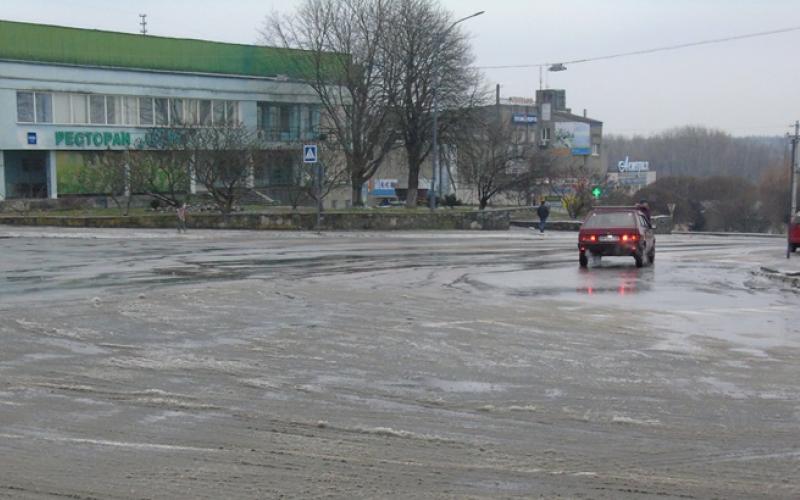 Вчорашня негода внесла значні корективи у роботу комунальних служб міста. Сильна ожеледь перетворювала вулиці та тротуари міста на суцільну ковзанку. Навіть посипані піщано-соляною вулиці через дощ та мороз покривалися льодовою кіркою, що утруднювало роботи.