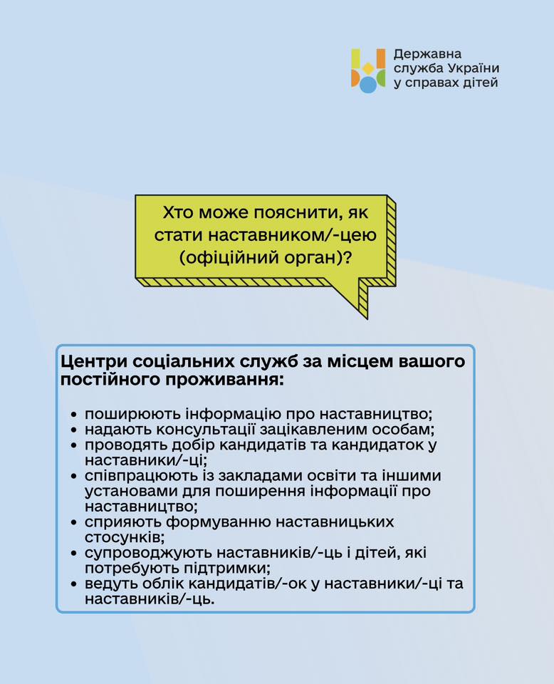 Наставництво — це про підтримку, довіру та справжню дружбу з дитиною, яка потребує уваги дорослого. Це можливість допомогти повірити у власні сили, розкрити здібності та підготуватися до самостійного життя.