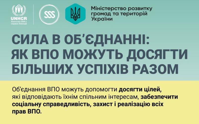 Об’єднання ВПО можуть допомогти досягти цілей, які відповідають їхнім спільним інтересам, забезпечити соціальну справедливість, захист і реалізацію всіх прав ВПО.