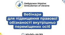 07.10.2024 16:40455Стартує серія правопросвітницьких онлайн-заходів для підвищення обізнаності ВПО, організованих Офісом ОмбудсманаО котрій? З 10:00 до 11:30. На вас чекають виступи представників міністерств та громадських організацій про практичні можливості у різних сферах. Також ви матимете змогу поставити запитання. На них... -