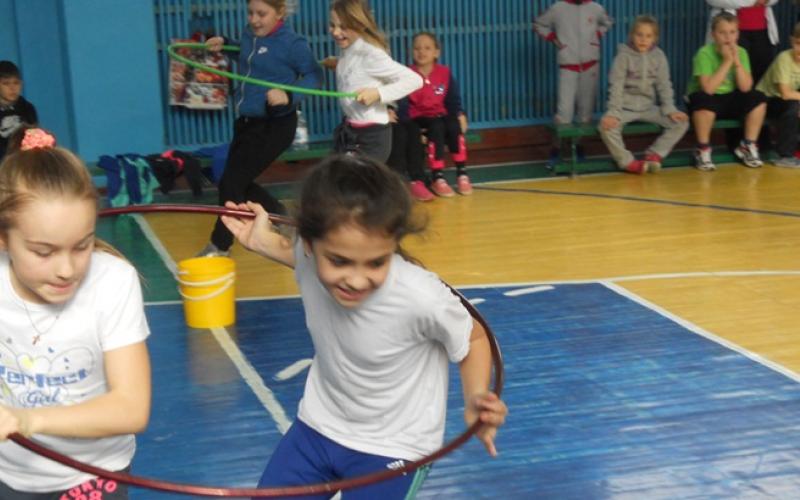 Діти змагалися в естафетах «Посадка картоплі», «Біг вдвох в гімнастичному обручі», з фітнес-м’ячами, хокейній естафеті та конкурсі «Снайпер». Кожну школу представляли 10 учнів: 5 хлопчиків та 5 дівчаток.