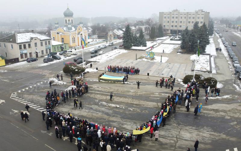 У Малині відзначили День єднання спільним виконанням Державного Гімну України