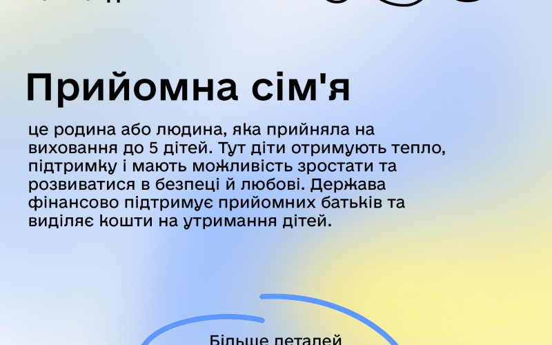 В Україні тисячі дітей зростають без сім‘ї та позбавлені батьківської турботи. Але для кожної дитини сім’я – це можливість зростати в любові та безпеці, відчувати турботу, долати разом труднощі. Сімейні форми виховання, усиновлення та послуга патронату можуть дати дітям стабільне майбутнє, а родинам — радість від турботи про інших.