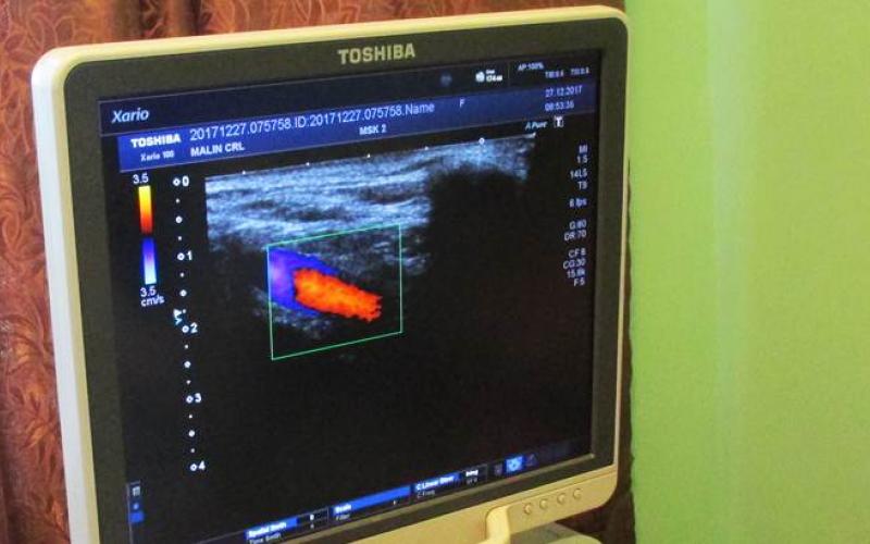 Таким чином, УЗД-апарат повністю укомплектовано. Віднедавна він має не два, а три датчики: два — для обстеження серця та черевної порожнини, а третій — ще й для обстеження судин, щитовидної та молочної залоз, шкіри, підшкірної клітковини тощо. Це значно розширює можливості діагностики у Малині. Підозри на пухлини, в тому числі і -онко, різні види мастопатії, варикоз вен — ось лише неповний перелік захворювань, які можна діагностувати «на місці». До того ж, у Малині можна зробити доплерографію — дослідження, яке дає можливість визначити швидкість течії крові по венах і артеріях, визначити наявність тромбів і атеросклеротичних бляшок, порушення кровообігу в судинах, звуження судин.