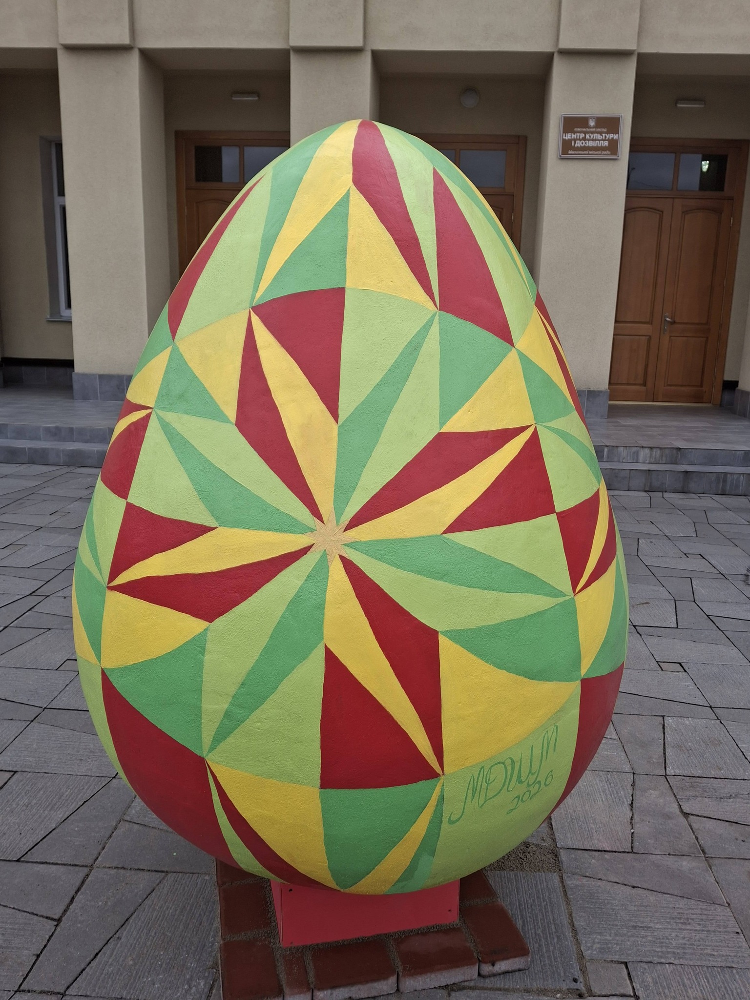 Сьогодні в центрі міста, біля Центру культури та дозвілля, з’явилася яскрава Великодня писанка створена руками вихованців та викладачів Малинської дитячої школи мистецтв. Допомогу у встановленні надало КП "Екоресурс".