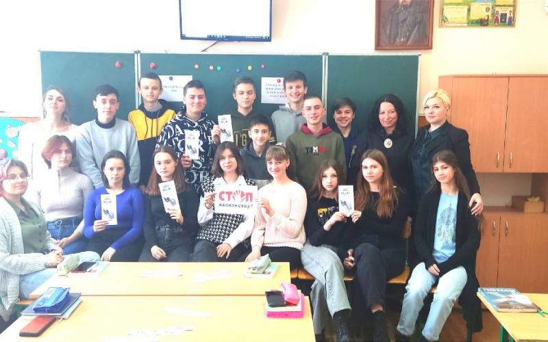 У рамках проведення даної акції на території Малинської громади спеціалістами служби у справах дітей спільно зі старшим інспектором ювенальної превенції відділення поліції Коростенського РУП ГУНП в Житомирській області Ольгою Савчук для учнів 9 класу ЗОШ №6 було проведено виховний захід  на тему «Підлітки проти насильства».