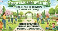 16.03.2026 12:3162Весна в Малинській громаді: стартує щорічний місячник благоустрою!Весна прийшла в Малинську громаду, а з нею — і традиційний час великого прибирання! Відповідно до рішення виконавчого комітету №104 від 12 березня 2026 року, від сьогодні у громаді офіційно розпочато... -