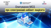 18.09.2023 11:00673Триває Всеукраїнське онлайн-опитування громадян щодо майбутнього електронного кабінету пацієнтаЗа спільною ініціативою МОЗ та Проекту USAID «Підтримка реформи охорони здоров’я» запущено всеукраїнське онлайн-опитування громадян щодо майбутнього електронного кабінету пацієнта. Мета опитування... -