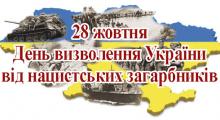 28.10.2021 10:34221828 жовтня - День визволення України від фашистських загарбників28 жовтня виповнюється 77-а річниця вигнання військ нацистської Німеччини та її союзників за межі сучасної України. В цей день ми висловлюємо слова глибокої вдячності ветеранам, учасникам бойових... -
