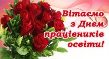 03.10.2021 08:381231З Днем працівників освіти!Шановні освітяни – працівники та ветерани освітянської ниви! Щиро вітаю Вас з нагоди професійного свята – Дня працівників освіти! Бути вчителем, вихователем, наставником – справжнє мистецтво, обране... -