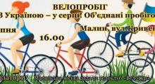 19.08.2021 16:11656«З Україною – у серці! Об’єднані пробігом!»Під таким гаслом 23 серпня 2021 року, з нагоди Дня Державного Прапора України, у Малині відбудеться велопробіг. Запрошуємо любителів велоспорту приєднатися! Святкова колона проїде основними вулицями... -