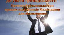 31.08.2021 12:53694Чекаємо на пропозиції щодо відзначення кращих підприємців громади!Традиційно у першу неділю вересня, згідно з Указом Президента України, у нашій державі відзначається День підприємця. З урахуванням великої ролі підприємництва у вирішенні соціально-економічних... -